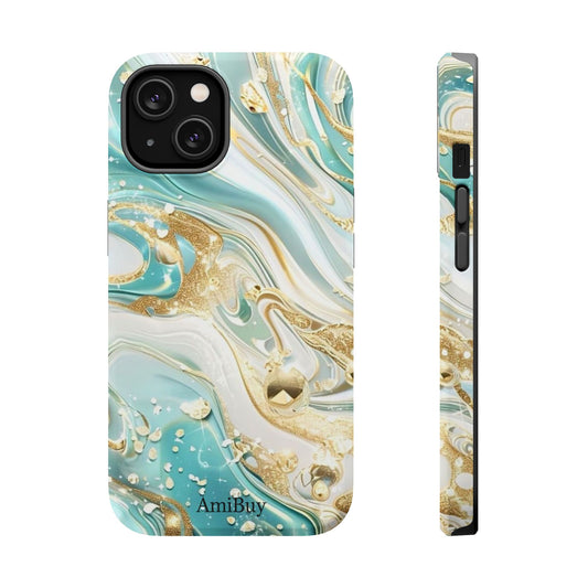 Marbled Teal & Gold Magnetic Impact-Resistant Phone Case