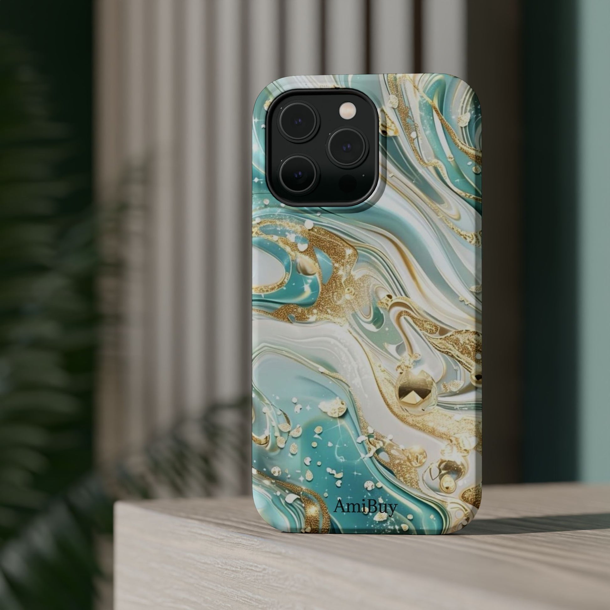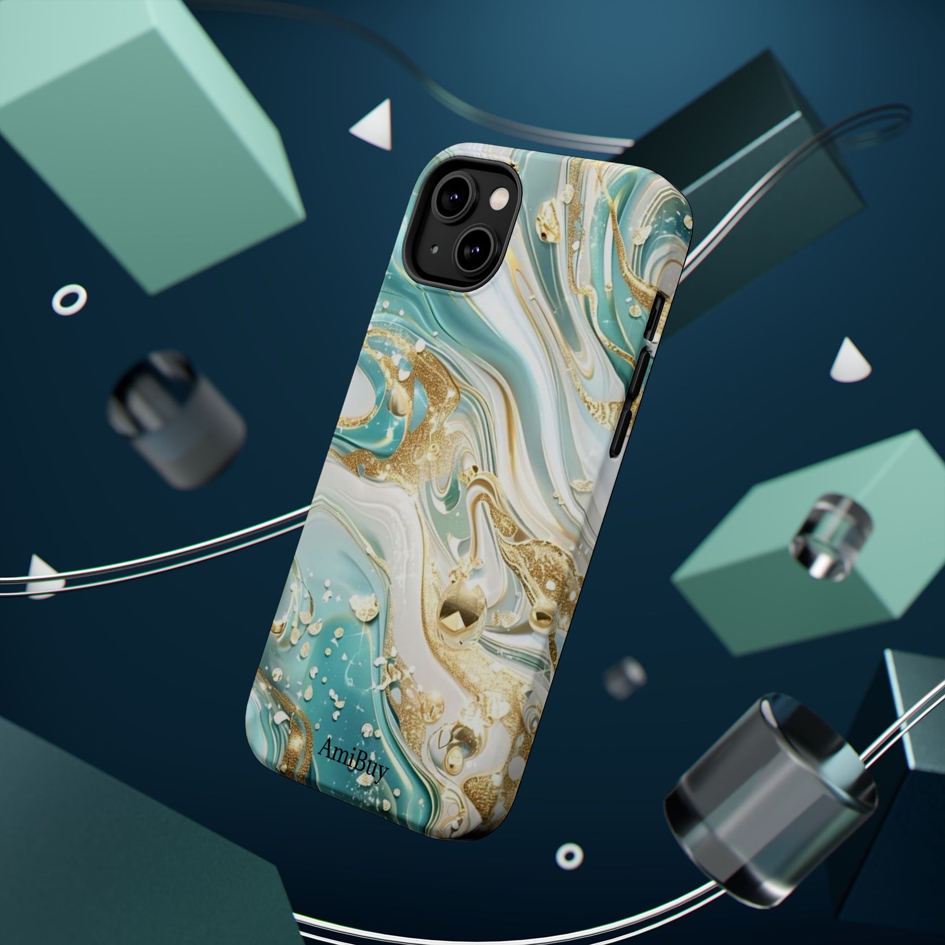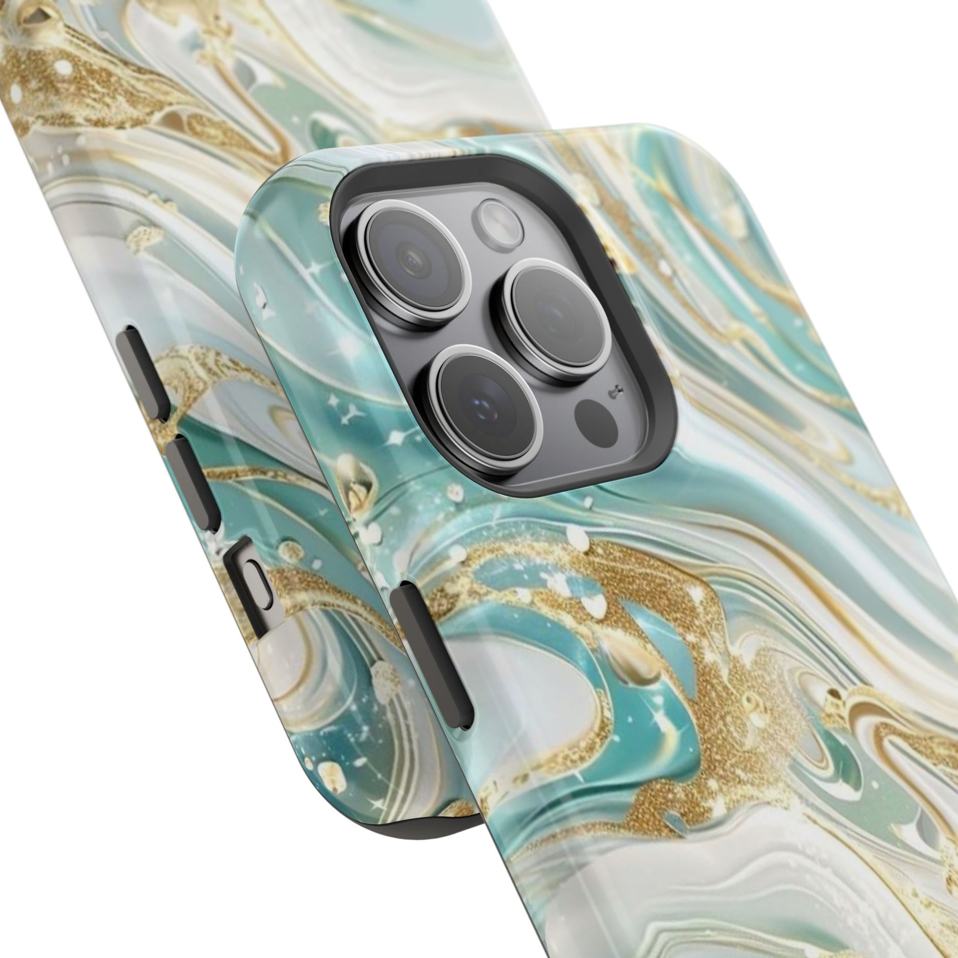 Marbled Teal & Gold Magnetic Impact-Resistant Phone Case